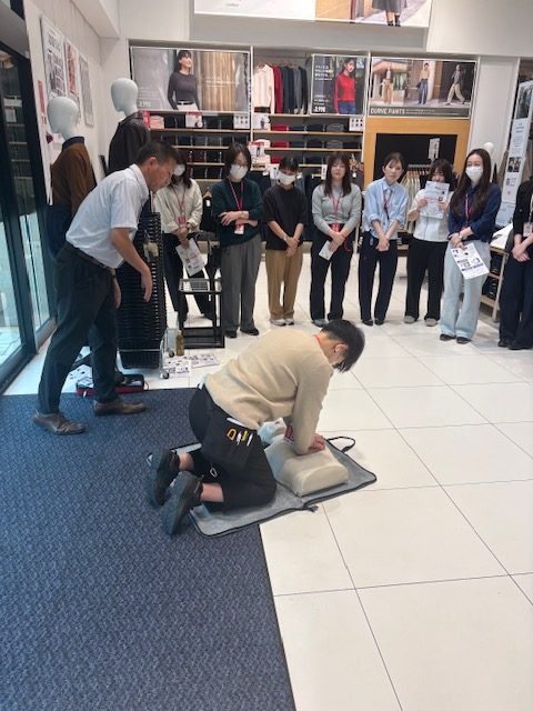 ユニクロ山口店では避難訓練・AED講習を行っています。